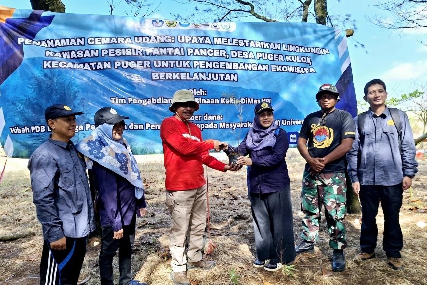 Kegiatan Biologi Peduli Lingkungan (BPL) yang diselenggarakan oleh Himabio “Bacteriophage” ini berkolaborasi dengan Tim Pengabdian Desa Binaan KeRis-DiMas HPI yang diketuai oleh Ibu Dr. Esti Utarti, S.P., M.Si. bersama tim anggota kegiatan pengabdian kepada masyarakat yaitu Dra. Susantin Fajariyah, M.Si., Rendy Setiawan, S.Si., M.Si. dan Ns. Mashuri, M.Kep, serta Kelompok Sadar Wisata (POKDARWIS) Desa Puger Kulon. Kegiatan Biologi Peduli Lingkungan (BPL) ini diikuti oleh sekitar 28 mahasiswa yang terdiri dari mahasiswa S1 dan S2 Jurusan Biologi yang ikut berpartisipasi dalam kegiatan tersebut. Selain itu, Kelompok Sadar Wisata (POKDARWIS) Desa Puger Kulon, unsur masyarakat, serta Prajurit Pasmar 2 Korps Marinir TNI AL yang tergabung dalam Satgasmar Ops Pam Puter XXVIII TA.2024 Pulau Nusa Barung, juga terlibat dalam kegiatan BPL tersebut. Kegiatan kolaborasi bersama ini mengambil tema “Penanaman Cemara Udang: Upaya Melestarikan Lingkungan Kawasan Pesisir Pantai Pancer, Desa Puger Kulon, Kecamatan Puger Untuk Pengembangan Ekowisata Berkelanjutan”.