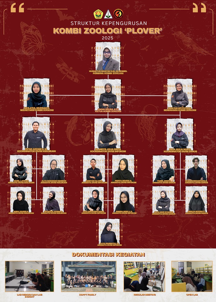 “Plover” berasal dari nama burung yang terkenal karena kelincahan, ketelitian, dan keberaniannya. Diharapkan Kombi Zoologi dapat bergerak aktif, meningkatkan ketelitian dalam analisis ilmiah dan memiliki jiwa keberanian dalam semangat eksplorasi.