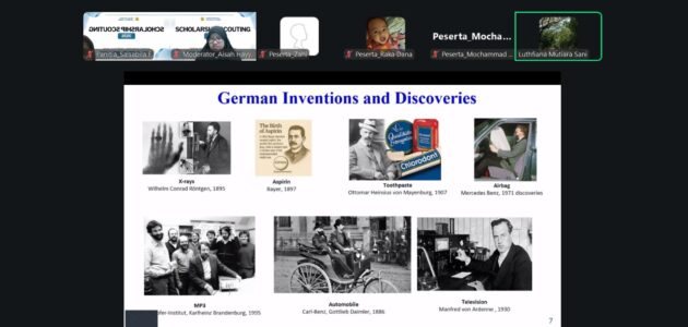Selanjutnya, narasumber kedua, Luthfiana Mutiara S., M.Si. (Awardee Beasiswa Doktoral DAAD 2025), memaparkan materi mengenai “Beasiswa Doktoral DAAD”. Ia menjelaskan peluang studi doktoral di Jerman melalui program DAAD, termasuk keuntungan yang ditawarkan, seperti dukungan finansial secara penuh, fasilitas penelitian, serta jaringan akademik internasional. Selain itu, ia juga memberikan gambaran mengenai proses aplikasi, persiapan dokumen, hingga pentingnya kemampuan bahasa dan kesiapan riset bagi calon pelamar.